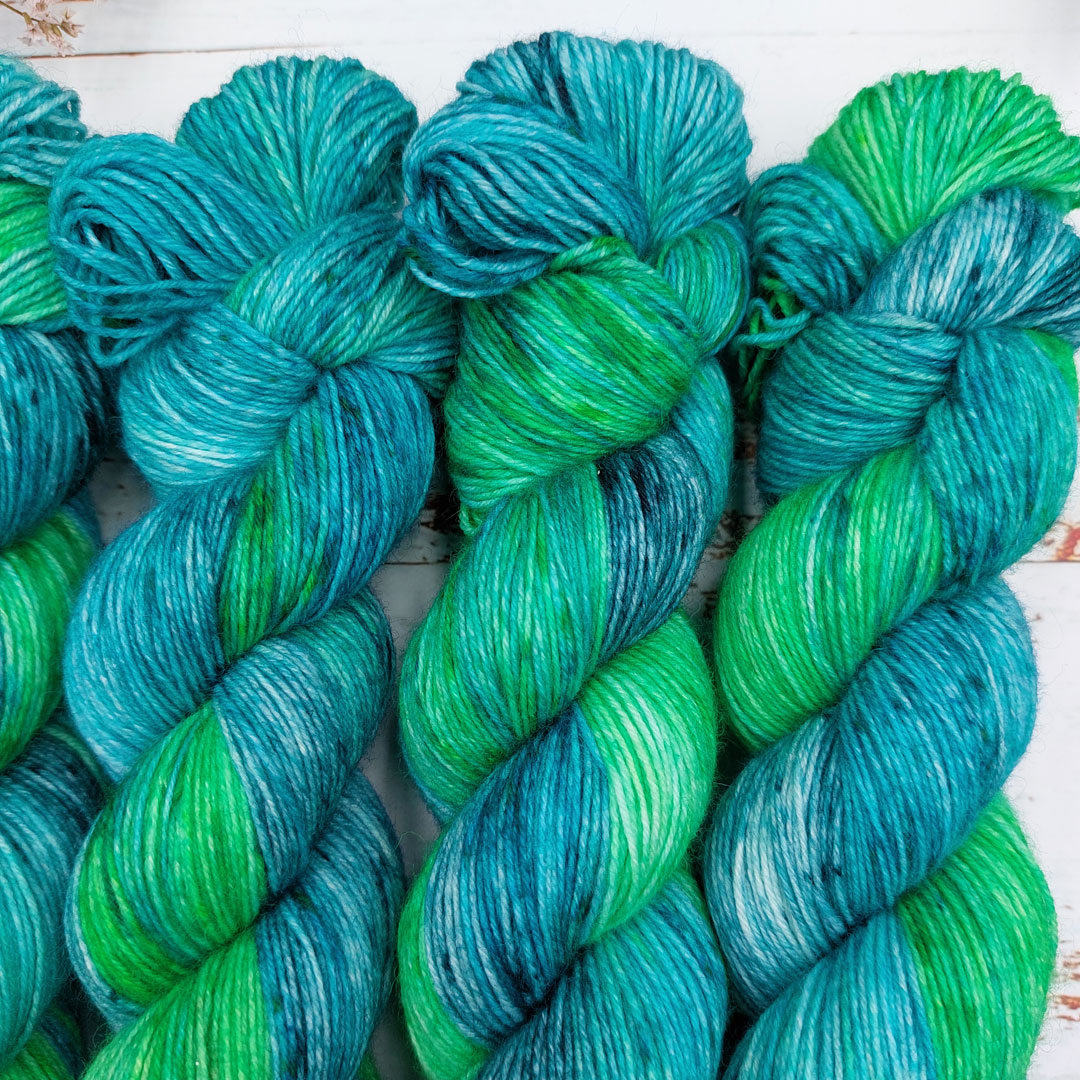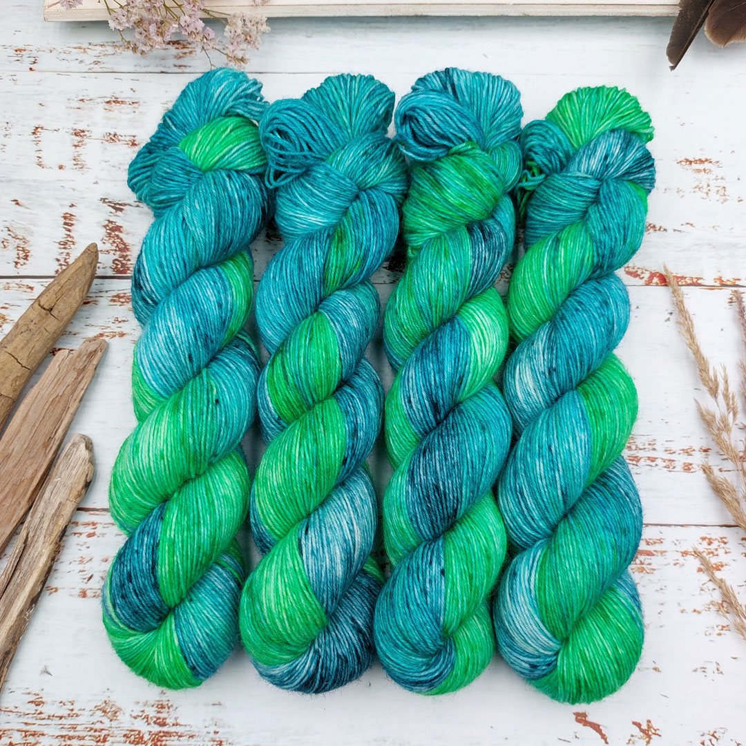Bei handgefärbter Sockenwolle entsteht je nach Sockengröße ein anderes Farbmuster - immer wieder spannend zu sehen.